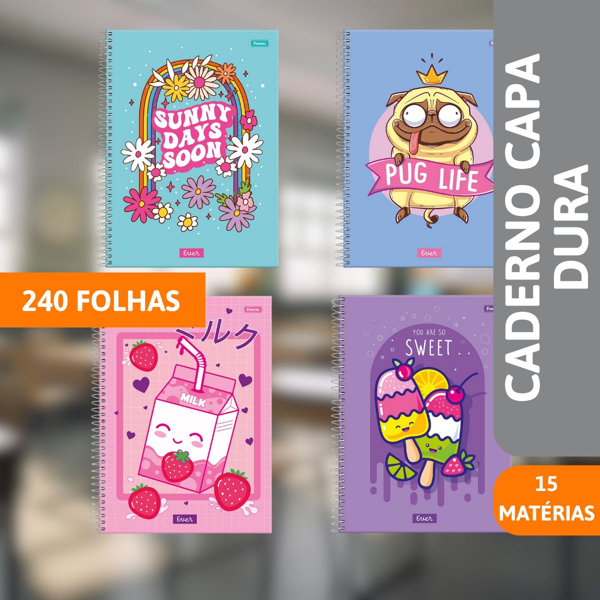 - Capa Dura Resistente: Garante maior durabilidade e proteção para as folhas internas, suportando o uso intenso na mochila e o manuseio constante, mantendo o caderno impecável por todo o ano letivo.