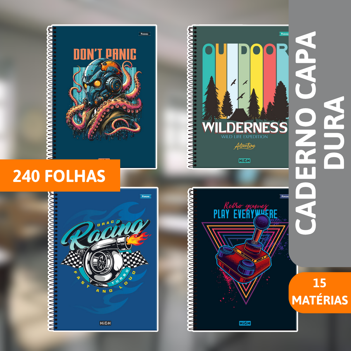 O Caderno Universitário Capa Dura 15 Matérias (240 Folhas) High Masculino da FORONI é a escolha perfeita para estudantes que buscam organização extrema, resistência e um design que reflita um estilo masculino moderno e robusto para o dia a dia acadêmico intenso. Com capas que apresentam estampas, texturas ou grafismos alinhados às tendências do público masculino, este caderno robusto combina a funcionalidade de múltiplas disciplinas com um visual arrojado e atual.