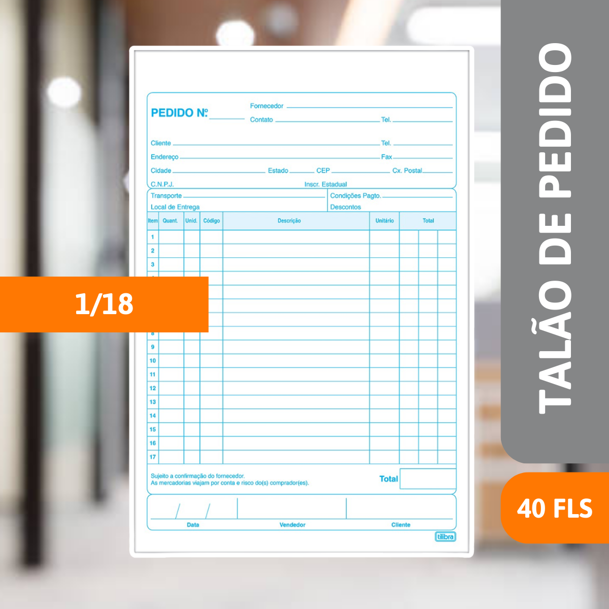 O Talão de Pedido 1/18 2 Vias da Tilibra é a ferramenta ideal para dar profissionalismo e clareza a qualquer transação comercial. Projetado para otimizar a rotina de vendas, este talão garante que cada pedido seja registrado de forma segura e com uma cópia para ambas as partes.