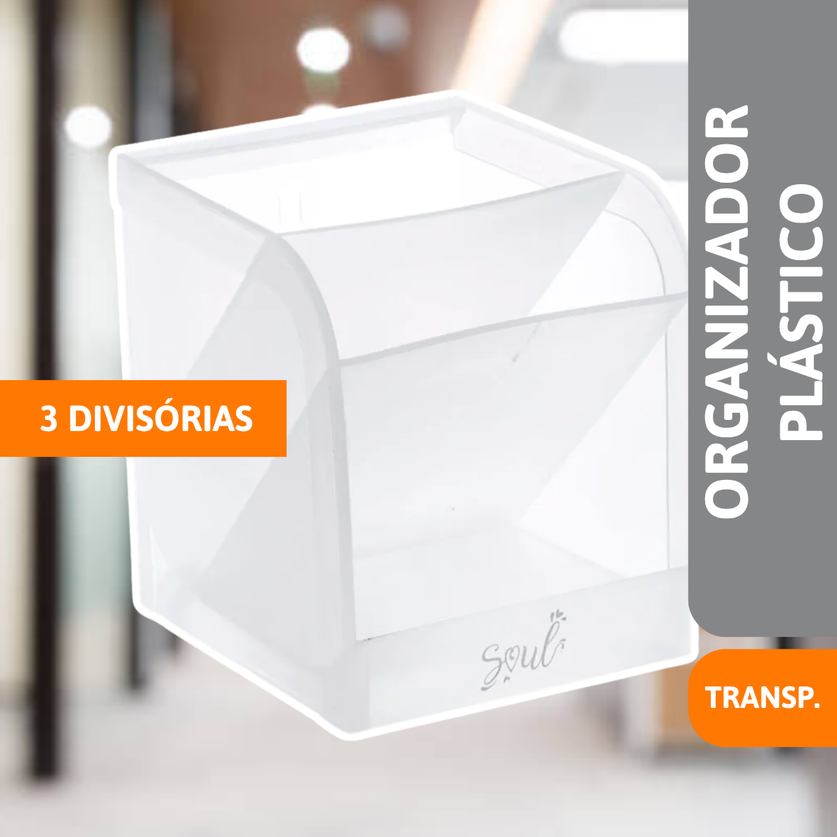 A cor transparente permite que você visualize facilmente o conteúdo de cada uma das três divisórias, otimizando o seu tempo e evitando a bagunça. O design vertical é perfeito para economizar espaço, garantindo que sua área de trabalho fique limpa e funcional.