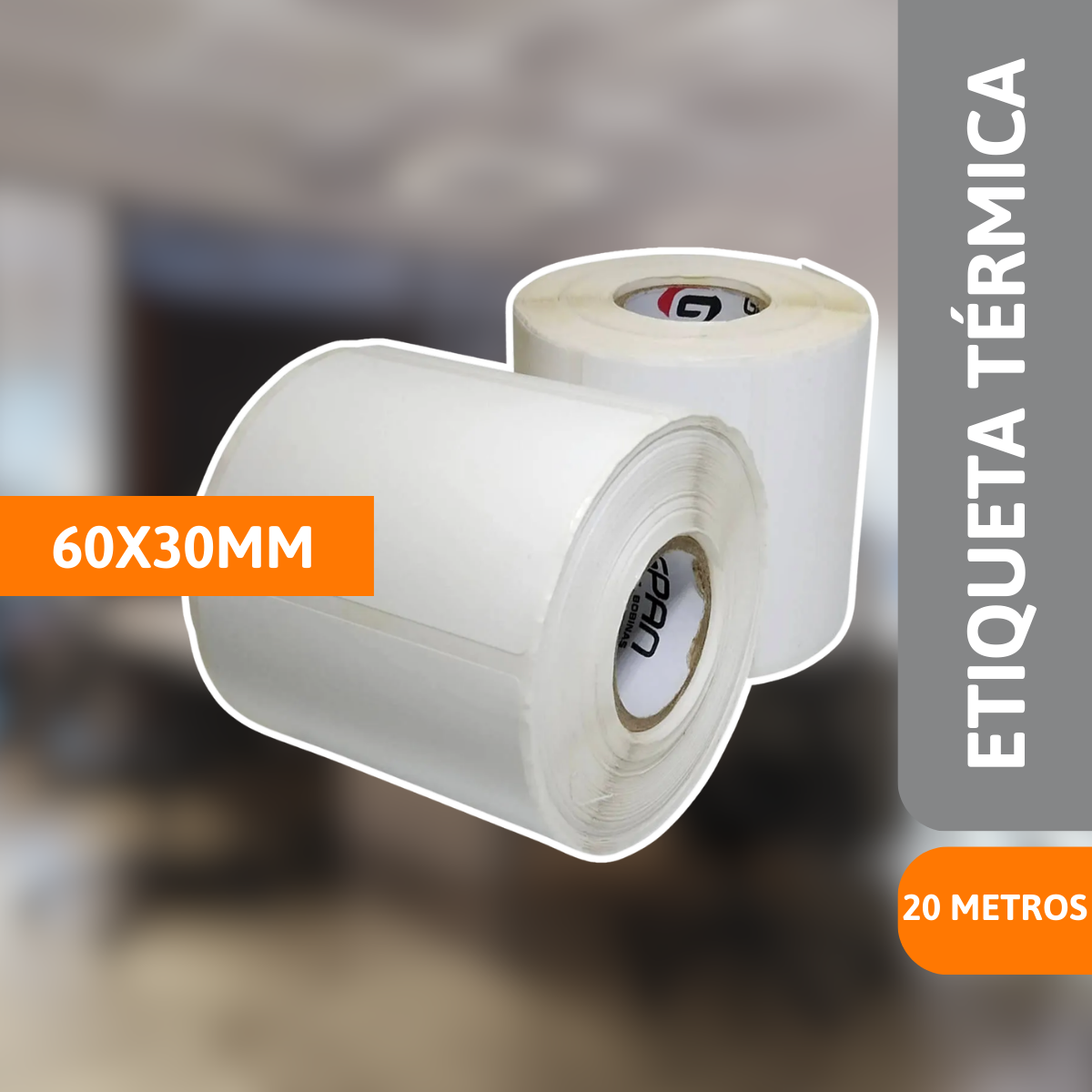 Material: Papel Térmico Adesivo de alta sensibilidade.