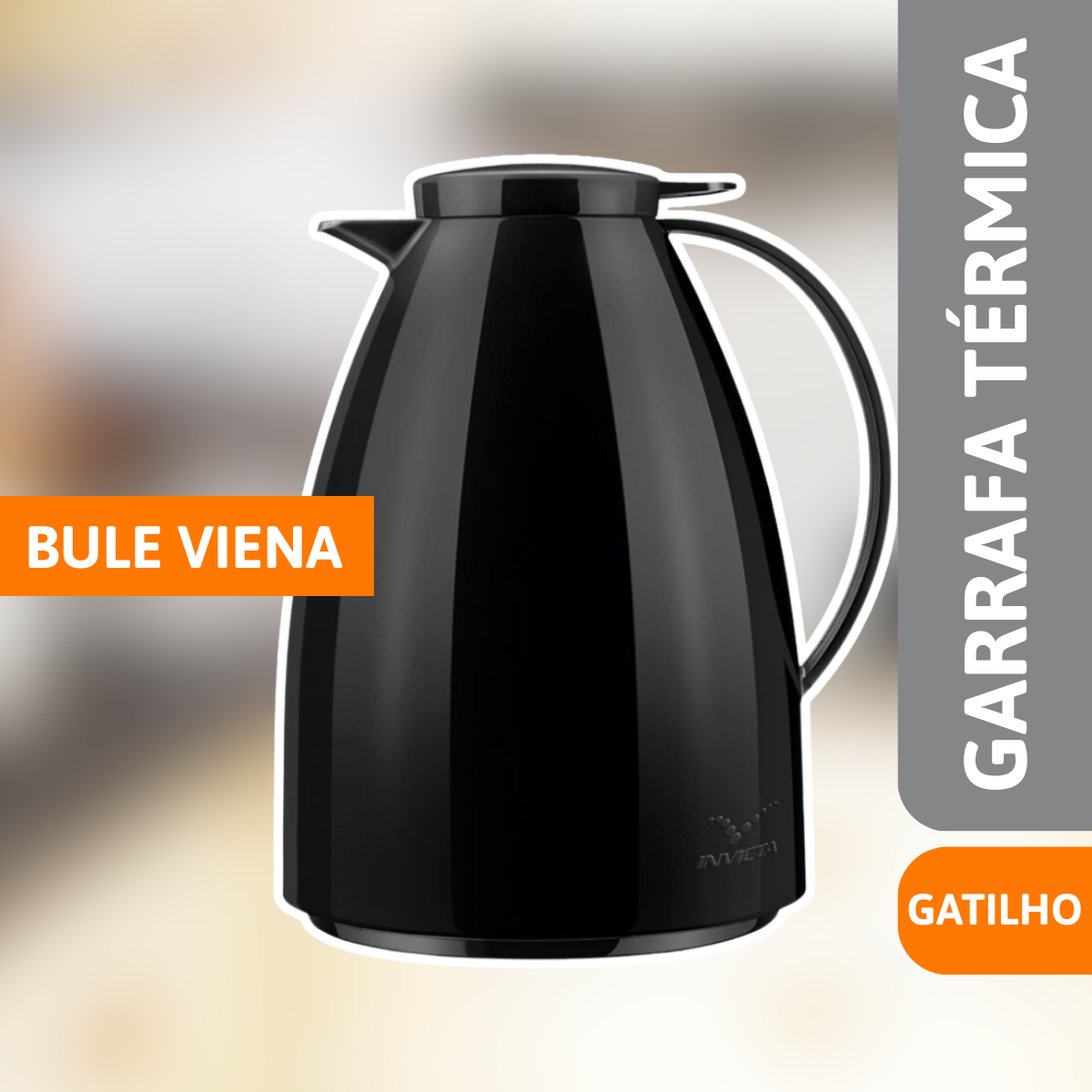 O Bule Viena com Gatilho 1L Preto da INVICTA é a união perfeita entre o design clássico Viena e a moderna praticidade do sistema de gatilho para servir, tudo em um elegante acabamento preto. Com sua capacidade de 1 litro, ele é ideal para cafés da manhã em família, para manter a bebida quente durante o dia de trabalho ou para servir convidados com facilidade, combinando tradição e inovação.