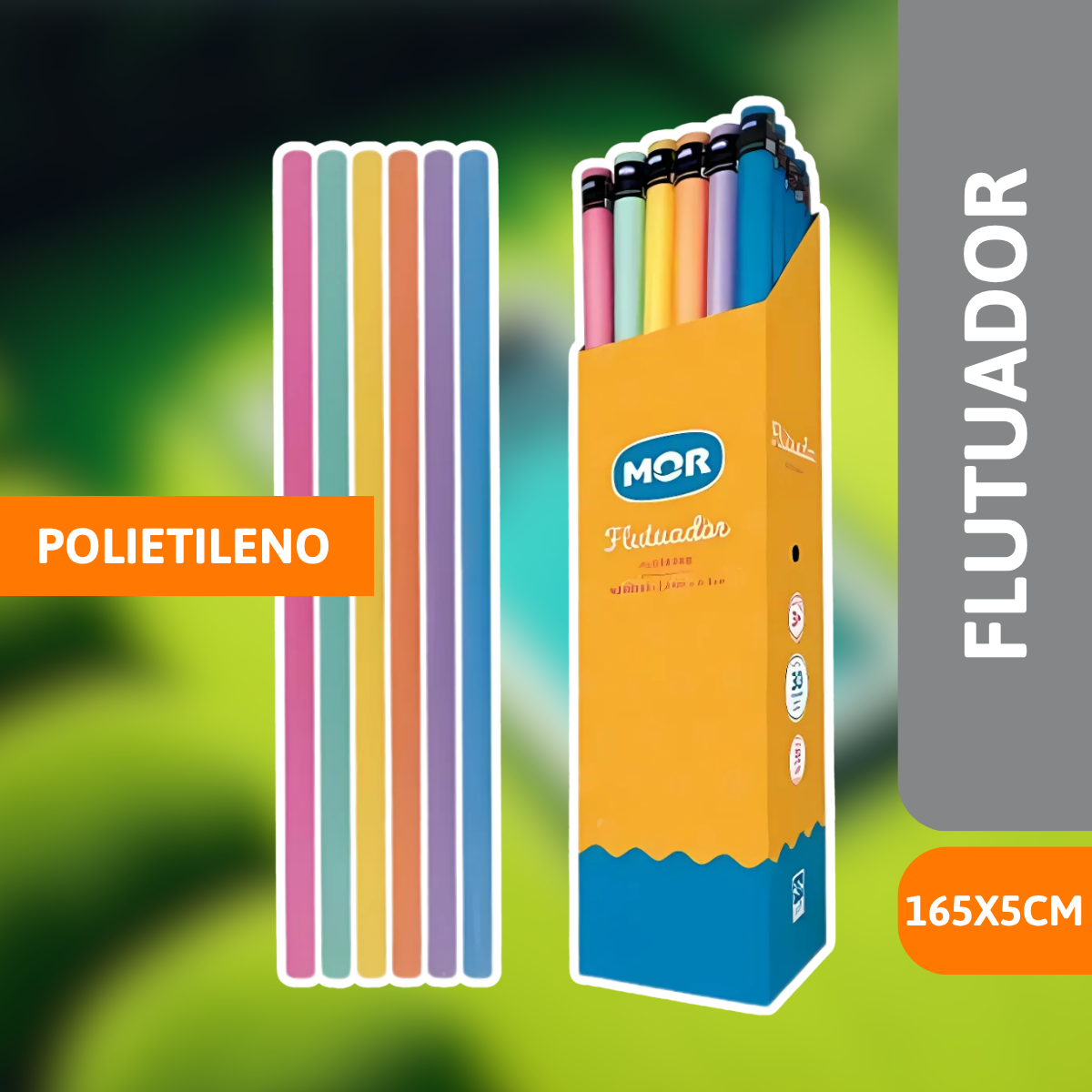 O Flutuador Espaguete da MOR é o acessório clássico e indispensável para a diversão e os exercícios aquáticos na piscina.